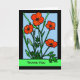 Carte de voeux de papier blanc de Merci avec une illustration des pavots rouges à l'intérieur d'un cadre noir. L'illustration ressemble au verre souillé avec les contours noirs. Pavots rouges lumineux de tiges et de feuille vert-foncé. Arrière - plan bleu-clair de ciel. Courtoisie d'élément de pavot d'Openclipart. Art, image, et studios de Shoaff Ballanger de © de copyright de vers.