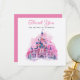 Célébrez le premier anniversaire de votre petit avec ce charmant château rose aquarelle carte de remerciements, parfait pour exprimer sa gratitude avec une touche de magie de conte de fées.