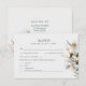 Élevez vos préparations mariages avec nos Citrouilles blancs avec la carte RSVP de mariage Fleur sauvage, offrant des options de menu et de régime pour vos invités. Décorée avec le même design d'aquarelle enchanteur, avec des fleurs sauvages délicats et des citrouilles blancs, cette carte s'harmonise parfaitement avec notre collection. Sur le dos, vous trouverez les noms et l'adresse du couple pour une réponse facile. C'est le moyen idéal de rassembler les détails essentiels tout en ajoutant une touche d'élégance à votre papeterie mariage.