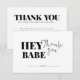 Transformez chaque colis en votre prochaine vente. Cette carte de remerciement « Hey Babe » combine une typographie éditoriale audacieuse avec un code de réduction entièrement modifiable, un espace réservé pour le logo et un champ pour le site web — conçue pour les boutiques, les vendeurs Etsy et les petites entreprises appartenant à des femmes qui veulent des encarts d'emballage qui soient à la hauteur du produit qu'ils renferment.
