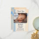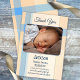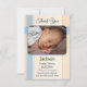 Carte de remerciements bébé neutre de genre avec une photo de votre propre bébé sur un arrière - plan pastel bleu et corail pêche plaid.