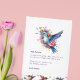 Remerciez vos invités de fête d'anniversaire avec cette carte de remerciement représentant un colibri aquarelle avec un bouquet floral sur fond blanc.