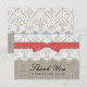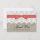 Elégante carte de remerciement pour express votre appréciation pour les invités ayant un arc imprimé sur la dentelle avec arrière - plan burlap. Ces cartes de remerciement peuvent être entièrement personnalisables et les couleurs peuvent être changées à votre choix. Contactez le vendeur pour plus d'informations sur xayuk69@yahoo.com
