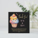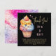 Crème glacée Genre Reveal Merci de fête mignonne et moderne et tendance sexe révéler carte d'invitation de fête avec une aquarelle illustration de crème glacée dans les cônes gaufres en rose et bleu avec éclaboussure de crème glacée or. Le texte dit "Merci. C'est une fille avec un message personnalisé" Parfait pour un genre révéler la fête en été.