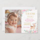Express votre gratitude avec notre mignonne Deer Floral Birthday Photo Carte de remerciements! Dotée d'un design de cerfs doux, entourée de fleurs douces et d'accents dorés chatoyants, cette carte est la meilleure façon de remercier les invités d'avoir participé à la journée spéciale de votre petit. Personnalisez-le avec une photo préférée de l'étoile d'anniversaire pour une touche personnelle supplémentaire. Une façon charmante et sincère de montrer sa reconnaissance tout en capturant la magie de la célébration!