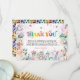Célébrez l'anniversaire de votre petite fille avec le Carte de remerciements enchanteur de fête d'anniversaire Cute Safari Animals, conçu pour créer un lien émotionnel profond avec les familles qui planifient une fête joyeuse et aventureuse. Ce charmant article donne vie à l'excitation d'un safari tropical, ce qui en fait un choix idéal pour la fête d'anniversaire d'une fille. Le design comprend un assortiment délicieux d'animaux sauvages de safari. Ces adorables animaux de fête sont prêts à se joindre à la fête, tous ornés de casquettes festifs capturant l'esprit joyeux de l'occasion. Éléments correspondants disponibles.