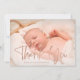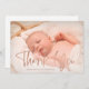 Cet élégant et élégant merci faire-part de naissance présente la photo du nouveau-né sur le devant, avec un spot pour un message personnel et les informations de naissance du bébé sur le dos. Les mots "merci" apparaissent dans un look moderne et faux rose d'or.