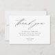 Un carte de remerciements mariage avec un élégant script noir et un message de remerciement à vos invités.