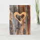Une photo d'un cadre en forme de coeur accroché à une clôture en bois rustique montre les textures uniques du bois et du temps. Ajoutez votre propre message pour une carte de voeux unique.