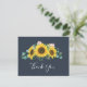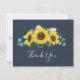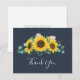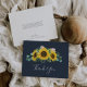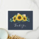 Ce carte de remerciements rustique de la marine de tournesol eucalyptus est parfait pour un mariage campagnard. Le design floral bohème présente des tournesols jaunes, des fleurs roses rousses et une végétation d'eucalyptus vert chasseur dans l'aquarelle avec une élégante touche moderne de saumonier. Personnalisez le dos de la carte avec vos noms, et un message de remerciement. Sinon, laissez la section modèle de message de remerciement vide pour écrire à la main une note personnalisée sur chaque carte après leur arrivée. Ces cartes peuvent être utilisées pour un mariage, une douche nuptiale ou tout événement spécial.