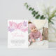 Papillon 1er anniversaire carte de remerciements avec photo avec des papillons roses et violets. Le thème papillon parfait pour la première fête d'anniversaire de votre petite fille.