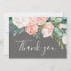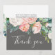 Cette carte de remerciements romantique à fleurs de pivoine gris est parfaite pour un mariage élégant. Le design floral présente des fleurs d'aquarelle en cascade blanches, roses, pêche et blanches sur un arrière - plan gris. Personnalisez la carte avec votre message de remerciement et vos noms.