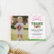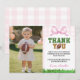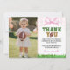 Merci à vos invités en style avec notre Carte de remerciements photo Football Girl Birthday. Doté d'un en vichy rose, d'accents d'arc doux et de détails de football ludique, cette carte est le parfait mélange de sport et de girly. Ajoutez la photo de votre enfant et le message personnalisé pour créer un souvenir attentionné que les clients aimeront. Idéal pour conclure votre fête d'anniversaire sur le thème du football rose avec une touche personnelle.