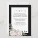 Cette élégante carte de poème FEMME à fleurs florales funéraires avec bouquet luxuriant rose rosée Roses et fleurs rustiques, une photo de votre être aimé dans cadre blanc, leur nom et dates de vie et texte en mémoire d'amour sur simple arrière - plan noir. Le revers de cette carte poème est de couleur noire avec des fleurs blanches chic, cadre vert ang avec psaume.