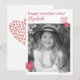 Capturez l'essence de l'amour avec notre carte de Saint-Valentin personnalisée avec photo « Lovely Hearts ». La couverture présente une photographie en noir et blanc ornée de cœurs peints à l'aquarelle dans des nuances de rose foncé, créant une atmosphère intemporelle et romantique. Personnalisez la carte avec « Joyeuse Saint-Valentin », la date et un nom dans une teinte rosée profonde, reflétant les nuances des cœurs. Le verso est magnifiquement orné des mêmes cœurs charmants. Ajoutez votre photo spéciale pour faire de cette carte un souvenir précieux, exprimant votre histoire d'amour unique.