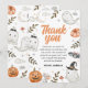 Adorable carte de remerciement d'anniversaire Halloween à l'aquarelle avec des fantômes mignons, des citrouilles et des détails pastel. Parfait pour envoyer des remerciements festifs à vos invités.