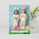 Souhaitez à vos amis et à votre famille une Pâques heureuse avec notre carte photo de Pâques à la main Whimsical ! La carte de Pâques affiche votre photo préférée avec "Pâques Joyeuses" dans une superposition de script blanc et écrit à la main. Personnalisez l'avant de la carte en ajoutant votre texte. La carte et un arrière - plan avec le texte de votre choix.