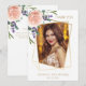 Avant : un cadre photo géométrique en faux or. Décoré d'un rose rose d'or, de fleurs et de lavande. Personnalisez et ajoutez une photo, votre nom et votre date. Retour : votre note de remerciement et votre nom.