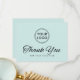 Elégant, bleu aqua clair carte de remerciements d'affaires avec logo personnalisé ou autre image sur le devant et texte personnalisé, les coordonnées de l'entreprise et les icônes de médias sociaux sur le dos. Vous pouvez modifier la couleur, les polices et les couleurs des arrière - plans à l'aide de l'outil de conception