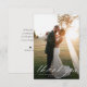 Un design carte photo moderne avec calligraphie blanche et une photo personnalisée, merci message à vos invités.
