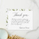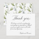 Une calligraphie classique de script de serif met en évidence cette Carte de remerciements mariage. L'arrière de la carte est recouvert d'un motif de feuilles d'eucalyptus vert vif. C'est un Carte de remerciements sans photo.