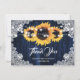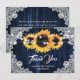 Merci à votre invité de partager dans votre journée spéciale avec ces cartes de remerciements élégantes et romantiques mariage de tournesol bleu marine. Éléments correspondants disponibles.