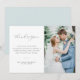 Un carte de remerciements mariage simple et moderne avec une merveilleuse lettrage noir et une photo personnalisée de la mariée et du marié. Ajoutez un message de remerciement personnel à vos invités.