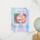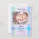 Carte de remerciements bébé neutre de genre avec une photo de votre propre bébé sur un arrière - plan multicolore pastel plaid.