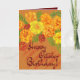 Élevez toute célébration d'anniversaire avec cette enchanteresse carte couleur automne avec les fleurs d'Octobre de marigolds et cosmos. Son design intemporel ajoute une touche de beauté naturelle aux festivités, ce qui en fait un choix idéal pour transmettre des voeux d’anniversaire et de joie sincères lors de leur journée spéciale.