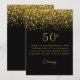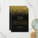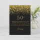 Il s'agit d'une carte de remerciements à thème noir et or pour une célébration du 50e anniversaire. Il présente un design de confettis doré scintillant en haut, un texte doré opulent et des détails personnalisés. Le carte de remerciements donne une impression formelle mais festive. Personnalisation disponible !