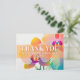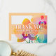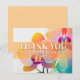 Une plage tropicale orchidée florale Carte de remerciements de mariage. Fleurs botaniques violettes, oranges et bleues colorées contrastées par des lettres blanches modernes. Parfait pour un mariage à Hawaii ou pour ajouter une touche exotique. Cartes de remerciement non-photo mariage.