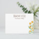 Envoyez un message de remerciement après des fêtes d'anniversaire ou des événements spéciaux avec cette papeterie plate inspirée de la nature avec un texte facile à modifier. Changez le titre "merci" en un message de votre choix et modifiez le nom pour en faire un cadeau vraiment unique. De charmantes fleurs illustrées jaunes de craspedia billy ball s'épanouissent sur le devant avec un petit détail de coccinelle tandis que le verso présente une rayure arc-en-ciel colorée de couleurs rétro et neutres comme le vert menthe, le bleu ciel, la rouille, le jaune doré et le rouge corail sur un fond crème.
