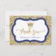 Dites merci à vos invités de douche avec cette carte de remerciements fantaisiste à thème prince ! Autres couleurs disponibles ici : http://www.zazzle.com/collections/baby_shower_for_a_little_prince-119604608769793210 La parties scintillant et le papier d'aluminium sont des images incorporées et le design s'imprime à plat et sans la texture de parties scintillant ou de papier d'aluminium.