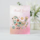Belle Petite Oiseau Florale Broderie rose Carte de remerciements