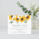 Remerciement photo de tournesols Bohème Rustique à petit budget. Une alternative moins chère en format PLUS PETIT 4,5” x 5,6”. Disponible sur du CARTON 110 lb SEMI BRILLANT par défaut (recommandé pour les invitations), OU sur un PAPIER MAIS FINITION SATINÉE 80 lb (idéal pour les encarts). Les enveloppes sont une option supplémentaire et sont légèrement plus grandes que la taille de la carte. Après votre grand jour, dites merci avec style avec des fleurs sauvages et des tournesols décorant le bord supérieur et une typographie minimaliste élégante que vous pouvez facilement personnaliser. Au dos, il suffit d'échanger votre photo préférée de votre journée en orientation paysage pour un joli souvenir pour vos invités,