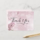 Mariage classique merci modèle de carte postale avec un design de fleur rose sur l'avant, et un message personnalisable à l'arrière. Vous pouvez le personnaliser avec le bouton customiser. Envoyez votre message de remerciement mariage à vos amis et à votre famille en utilisant cette carte postale de remerciement simple et magnifique avec les mots "merci" écrit dans un script d'écriture blanc superposé.