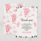 Hot Pink Girls First Rodeo 1st Birthday Cartes de remerciements Bébées western thème premier rodéo anniversaire carte de remerciements avec des bottes de cowgirl, casquette cowgirl, chaussures de cheval, cactus, marguerites et vaches imprimé motif en noir et brun foncé.