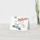 Adorable voiture de course à thème fête d'anniversaire ou carte de remerciements de baby shower. Cette jolie carte de voiture rétro avec des voitures aquarelles et des drapeaux.