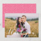 Envoyez des cartes de remerciements personnalisées à vos invités mariages pour les remercier d'avoir aidé à célébrer votre journée spéciale ! Les cartes de remerciement de la photo mariage contiennent les mots "merci" dans une police de style calligraphie design, des espaces réservés pour votre texte personnalisé et une photo, et un motif en pointillé rose et blanc tendance à l'arrière du carte de remerciements mariage. Modifiez la couleur de l'arrière - plan à l'aide de l'outil "Personnaliser".