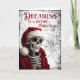 Rêve d'une carte de Noël gothique. © Dark Heart Desires. Cette carte de Noël gothique a un squelette portant un chapeau et une veste de Père Noël et les mots Dreaming of a gothic Christmas dessus. Cette carte est vide à l'intérieur afin que vous puissiez ajouter votre propre message.