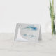 Robe de mariée blanche et plume de paon bleue sur fond gris argenté, carte de remerciement demoiselle d'honneur