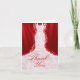 Customisez cette carte de note élégante élégante de Merci comportant une image d'une robe de noces de diamant de parties scintillantes de faux sous des projecteurs sur un arrière - plan rouge. Veuillez noter que c'est des parties scintillantes d'impression couleur et n'est pas des parties scintillantes réelles. L'invitation assortie de Fête de la mariée est également disponible.