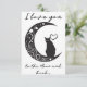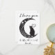 Cette carte de charme capte l'essence du romantisme à travers son design minimaliste, avec une silhouette épurée d'un chat contemplatif perché sur une lune croissant. La lune elle-même est ornée de tourbillons, de coeurs et d'étoiles délicats, créant une atmosphère de rêve qui incite le spectateur à regarder un peu plus longtemps. L'utilisation d'une palette monochrome aux teintes subtiles améliore la silhouette, ce qui en fait un choix élégant pour un amoureux de simplicité et de grâce féline. L'ajout de l'expression "Je t'aime à la Lune" pourrait faire de ce design un signe idéal d'affection pour un être cher, exprimant des sentiments profonds avec une torsion cosmique. Le sentiment est universellement compris, mais présenté de manière unique, ce qui fait de cette carte postale une façon parfaite de transmettre l'amour lors d'occasions spéciales ou tout simplement comme une surprise douce et inattendue. L'humeur sereine du design le rend également adapté à l'encadrement, servant de rappel intemporel d'affection.