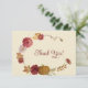 Carte de remerciements mariage rustique et simple avec couronnes à fleurs, marron, rose, rouille et jaune, citrouille et autres plantes, le tout sur fond crème. Une belle carte de notes pour remercier vos amis et votre famille pour leur cadeau et pour eux célébrant votre mariage avec vous.