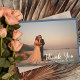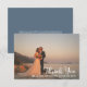 Carte de Remerciement de mariage minimaliste avec une grande photo à l'avant avec les noms et la date du mariage et votre message unique et signatures au dos. Comprend un fond bleu crépusculaire au dos. Photo de remplacement de modèle gracieuseté Unsplash. Conception de Holiday Hearts Designs.