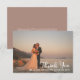 Carte de Remerciement de Mariage minimaliste avec une grande photo à l'avant avec les noms, la date du mariage et votre message unique et signatures au dos. Comprend un fond rose poussiéreux au dos. Photo de remplacement fournie par Unsplash. Conçu par Holiday Hearts Designs.