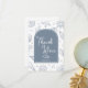 Cette carte de remerciement Dusty Blue "This All I Sea is Love" présente un arrière-plan côtier charmant rempli de gribouillis fantaisistes de couleur bleu poussiéreux représentant des coquillages, des étoiles de mer, des cœurs, des étincelles et des éléments océaniques pour une esthétique de bord de mer de rêve. Au centre du devant se trouve un arc bleu poussiéreux doux entouré d'un mince arc intérieur blanc, affichant la phrase « Merci » dans un script ludique, suivi d'une illustration délicate de coquillage et d'un espace personnalisable pour ajouter le nom de la mariée. Le verso de la carte est vierge, parfait pour ajouter un message manuscrit personnel. Tout le texte et les couleurs peuvent être modifiés pour correspondre au thème de votre fête de mariage.