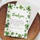Ces adorables cartes de remerciement pour une baby shower, conçues pour aller avec l'invitation 'shamrock'. Le design présente de doux trèfles verts à l'aquarelle avec un message de remerciement élégant.