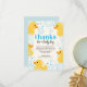 Pour le petit garçon qui a célébré son premier anniversaire. Jolie carte de remerciement d'anniversaire "Lucky Duck". Une carte de remerciement d'anniversaire au thème de canard en caoutchouc super mignonne qui peut être personnalisée avec l'inclusion du nom de votre petit à la une du design et votre propre message de remerciement en bas du design (n'hésitez pas à utiliser le message de design inclus et insérez simplement vos propres noms/détails). Pour toute demande spéciale ou de personnalisation, veuillez nous contacter via Zazzle.