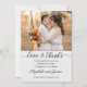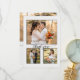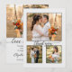 Carte de remerciements mariage avec 4 de vos propres photos de mariage préférées et des textes stylisés élégants en option. L'arrière - plan est gris clair. (également disponible en blanc)